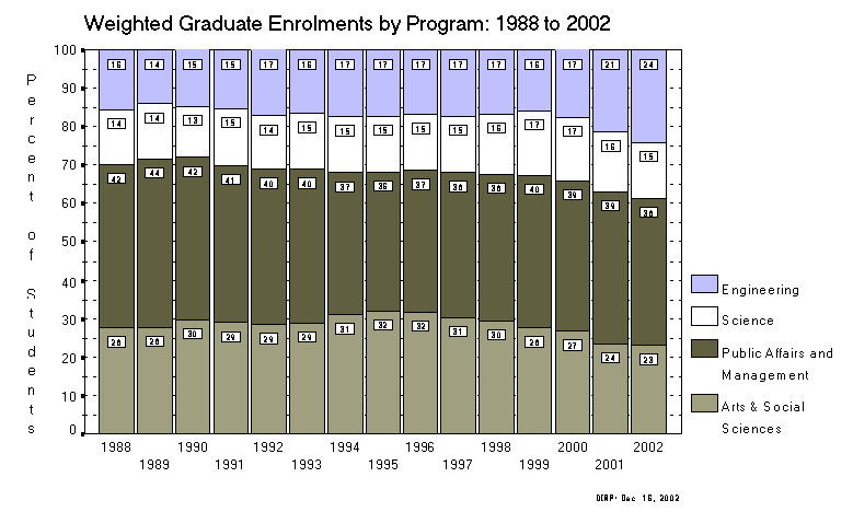 Weighted Graduate Enrolments by Program: 1998 to 2002