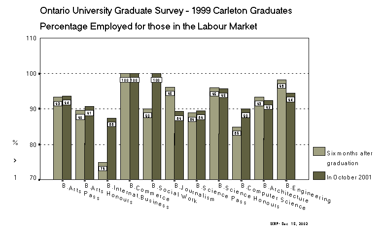 Ontario University Graduate Survey - 1999 Carleton Graduates Percentage Employed for those in the Labour Market