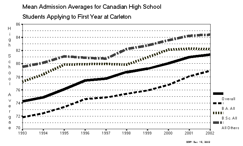 Mean Admission Averages for Canadian High School Students Applying to First Year at Carleton
