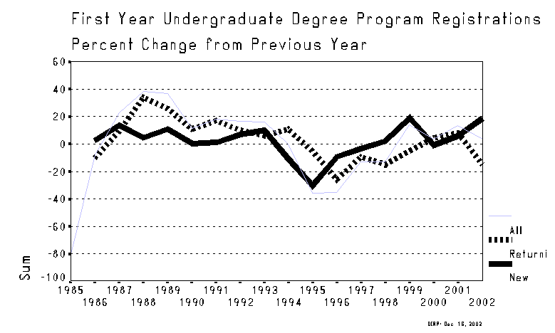 First Year Undergraduate Degree Program Registrations - Percent Change from Previous Year