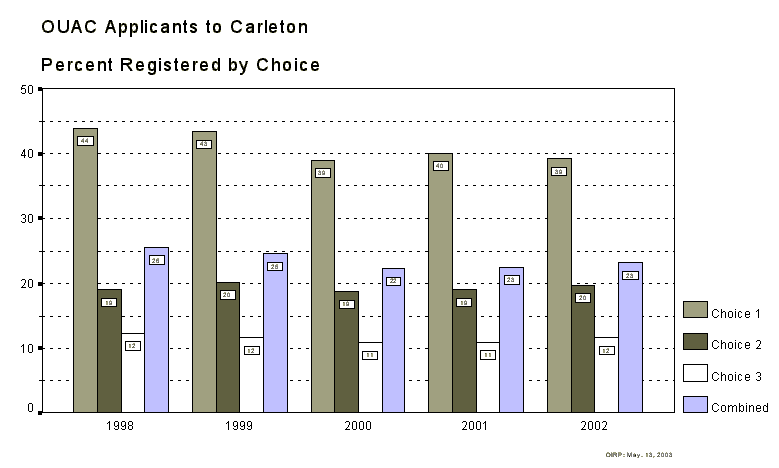 OUAC Applicants to Carleton - Percent Registered by Choice
