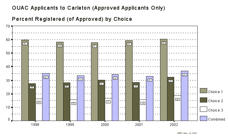 OUAC Applicants to Carleton (Approved Applicants Only) - Percent Registered (of Approved) by Choice