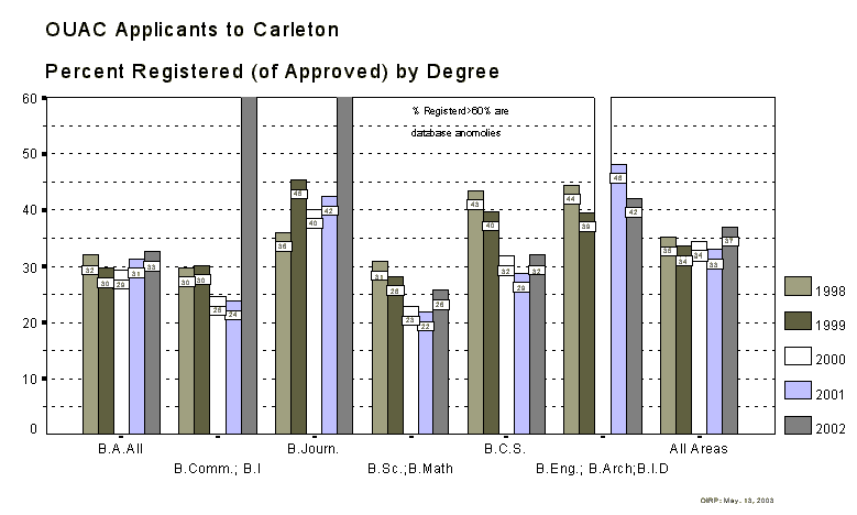 OUAC Applicants to Carleton - Percent Registered (of Approved) by Degree