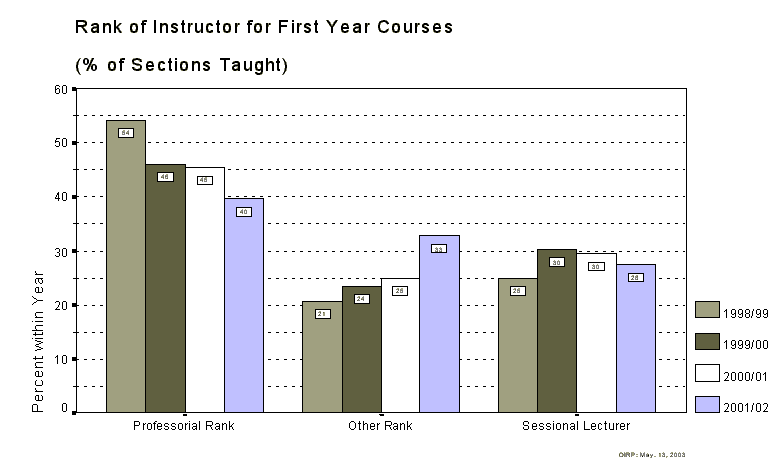 Rank of Instructor for First Year Courses - (% of Enrolment Taught)